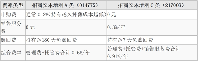 招商安本增利C类适配1年以内短期投资,零申购费且流动性高;A类适配1年以上长期配置,费率优且收益稳定。