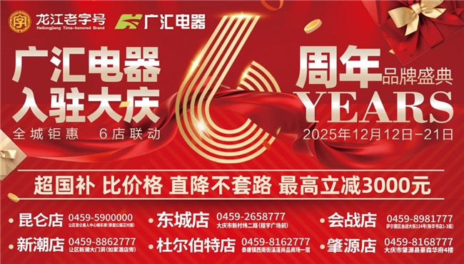 六载相伴,初心未改。大庆广汇电器将以六周年为全新起点,持续深化“品牌是金·服务是魂”的核心价值,以更优质的产品、更实惠价格、更暖心的服务,回馈大庆市民的信赖与支持,共创美好生活新篇章。