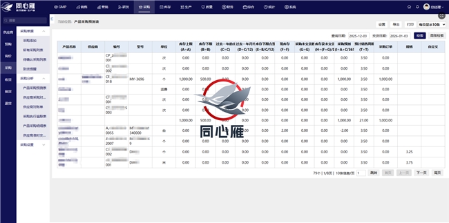 采购流程透明化,成本风险可控同心雁S-ERP实现了采购流程的全数字化管理,从采购申请、审批、下单、收货、验收、付款等环节均在系统中完成,流程透明化、可追溯。企业可根据自身管理需求自定义采购审批流程,支持多级审批与跨部门审批,提高审批效率。同时,系统实时记录采购过程中的各类数据,包括采购价格、采购数量、交货周期、质量检验结果等,便于企业进行采购成本分析与管控。此外,系统还具备采购风险预警功能,当采购价格异常、供应商交货延迟或质量不合格时,系统自动触发预警,帮助企业及时规避风险。