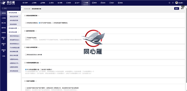 质量全程可控,满足合规要求同心雁S-ERP深度融合GMP等合规要求,构建了全流程质量管控体系。生产过程中,系统强制要求操作人员记录关键生产数据,包括原材料批次、生产参数、检验结果等,确保数据的完整性与真实性。同时,系统支持质量检验标准的自定义配置,企业可根据产品特性与合规要求设置原材料检验、工序检验、成品检验等各环节的检验项目与合格标准。检验人员通过系统记录检验数据,不合格产品自动触发返工、报废等处理流程,确保产品质量符合要求。此外,系统还具备完整的质量追溯功能,可实现从成品到原材料、从生产环节到供应商的全链条追溯,满足合规审计要求,保障产品质量安全。