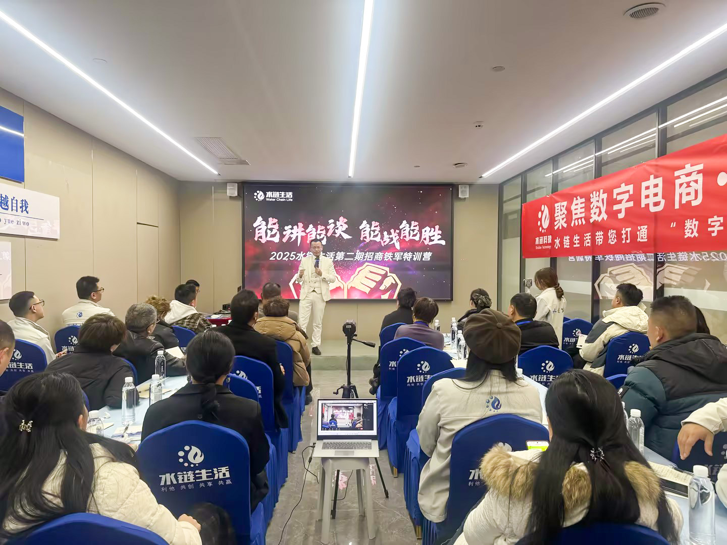12 月 8 日,水链生活第二、三期招商铁军特训营在贵阳水链生活总部培训室顺利收官。本次特训营以 “能讲能谈、能战能胜” 为核心目标,汇聚众多创业从业者与意向创业者,通过系统化培训与实战演练,为数字电商行业培育专业招商人才,助力平台拓展市场,赋能实体经济数字化转型。