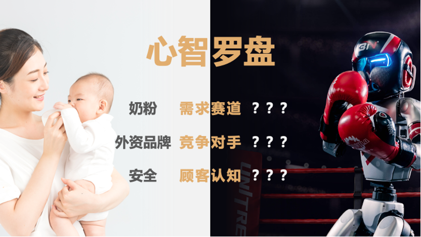 首先明确它所处的需求赛道是【奶粉】,飞鹤在其中面对的核心对手是【外资品牌】,顾客对后者的首要认知是【安全】。
