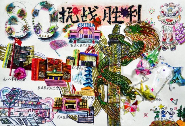 他们的作品以“抗战胜利”为核心,将80周年的时间符号、各地抗战纪念馆的建筑特色、航天元素与传狮纹样巧妙融合,用丰富的色彩和立体的创作手法,勾勒出兼具历史厚重感与现代设计感的画面,也展现出当代大学生对红色历史的敬畏与艺术探索的热情。