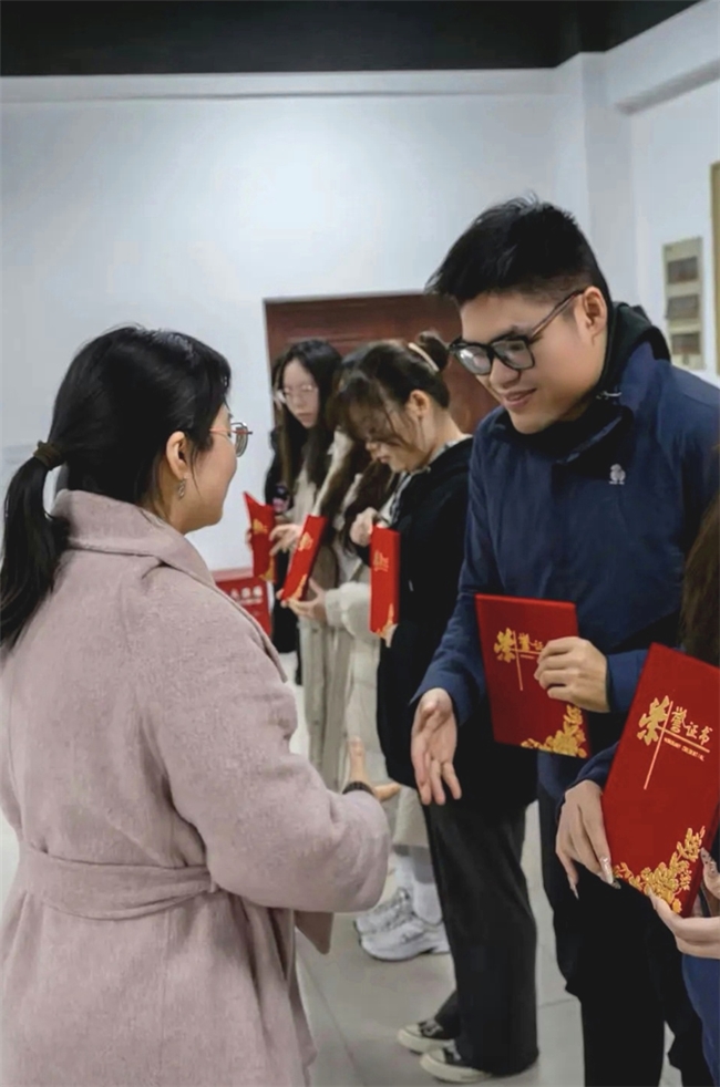 在学院举办的颁奖典礼现场,党旗与学院旗帜相映生辉,涂博文、刘柳接过红彤彤的荣誉证书,成为全场焦点。此次赛事不仅是对两位学子创作能力的肯定,更是南航金城学院艺术教育成果的生动体现。
