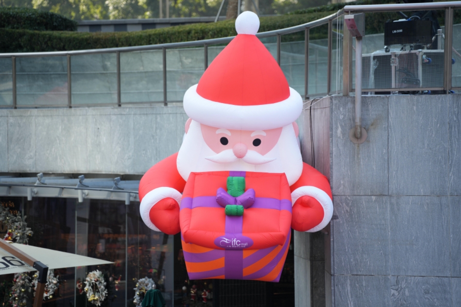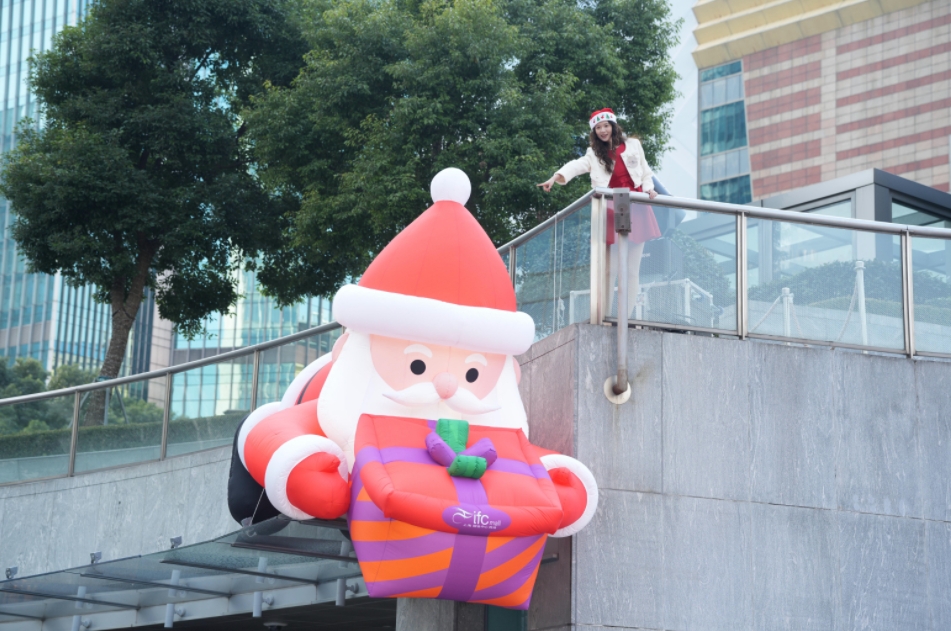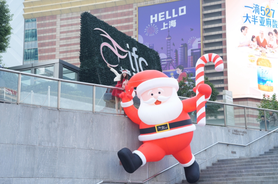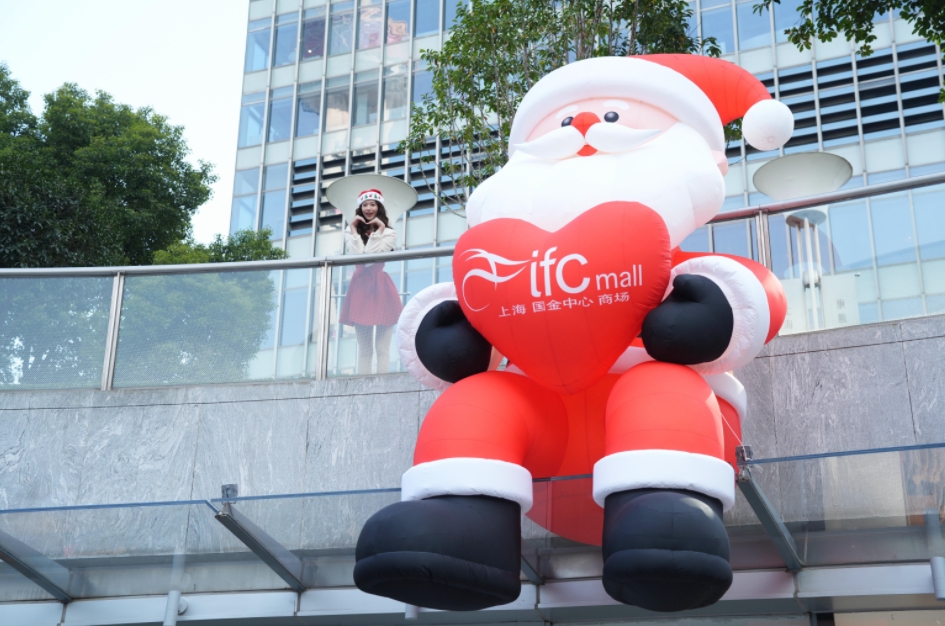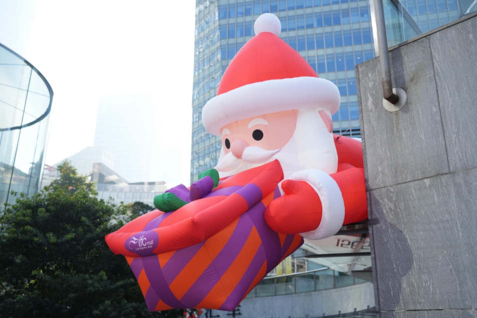 这些巨型圣诞老人是节日的使者,他们以生动有趣的姿态,增添了一抹别样的童趣氛围。当夜幕降临,这座圣诞乐园更是焕发出别样的光彩,璀璨的灯光照亮整个广场,将那些巨型圣诞老人气模映衬得更加栩栩如生,在浓浓的圣诞音乐声中,寓意着上海ifc商场为大家传递浓情的节日问候及欢乐的圣诞氛围。