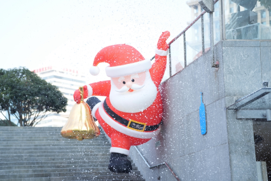 令人惊喜的是,周末期间,这座魔法点燃的下沉式广场将化身欢乐殿堂,2500只造型萌趣的圣诞老人以列队姿态不定时闪现下沉式广场台阶上,宛若童话世界跃然而出的精灵使者,让镜头记录定格您与圣诞老人的梦幻同框,开启属于您的冬日童话之旅吧!