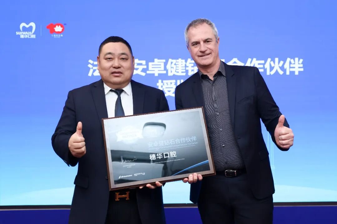 菲利普先生代表法国安卓健,向穗华口腔授予“法国安卓健Axiom BL X3全国首颗植入机构”及“安卓健钻石合作伙伴”牌匾。