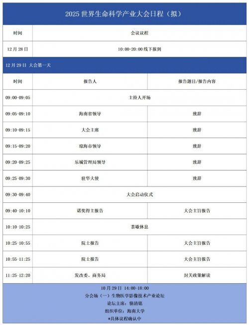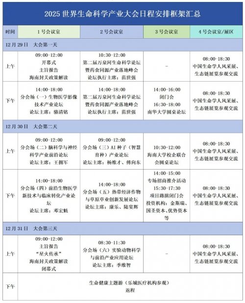 世界生命科学大会是我国生命科学领域层次高、覆盖面最广、影响力最大的国际学术盛会之一。为积极响应海南自贸港封关之势,由海南大学与中国科协生命科学学会联合体联合主办的“2025世界生命科学产业大会”将于2025年12月28日至31日在海南省琼海市博鳌乐城举行。这是海南自贸港2025年12月18日封关运作后首场国际性生命科学产业盛会。