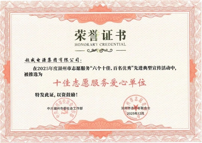 12月2日,湖州市举行“12·5”国际志愿者日暨2025年度志愿服务先进典型宣传活动。活动现场公布了2025年度湖州市志愿服务典型代表名单,超威集团凭借在志愿服务领域的持续深耕与突出贡献,成功获评“十佳志愿服务爱心单位”,成为企业践行社会责任的标杆典范。
