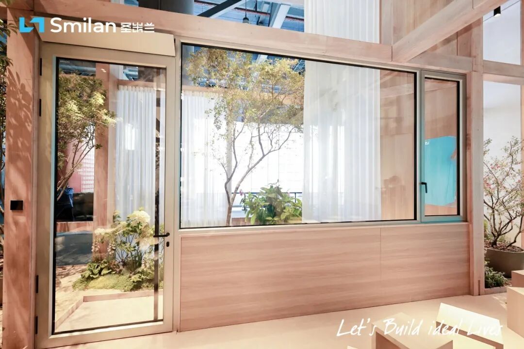 本次展台彻底跳脱传统产品陈列逻辑,以“花径”为空间骨骼,通过精心编排的动线,引导观者开启一场探索“窗景与自然共融关系”的漫步。