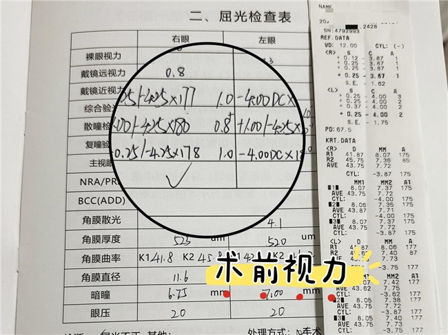 于同学是一名护理专业大四学生。由于学业与未来职业的特殊性,让他对视觉质量有着高于常人的要求。无论是课堂学习,还是未来临床工作中面临的精细操作,都需要稳定、清晰的视觉质量作为保障。然而,术前检查发现,他的双眼不仅有100度远视,还伴有高达425度的散光,这样的复杂屈光状态严重影响了他的学习效率,也让他对未来的职业发展感到担忧。