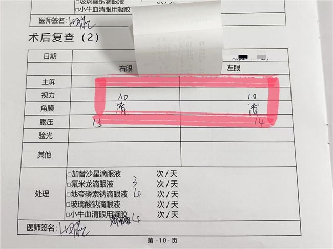 对于医务工作者而言,清晰的视力不仅是日常生活所需,更是精准执行医疗操作、保障患者安全的重要基础。近日,我院屈光科主任张海燕为一名23岁护理专业学生于同学成功实施了个性化近视矫正手术。术后一周,于同学的双眼均已恢复至1.0的清晰视力。
