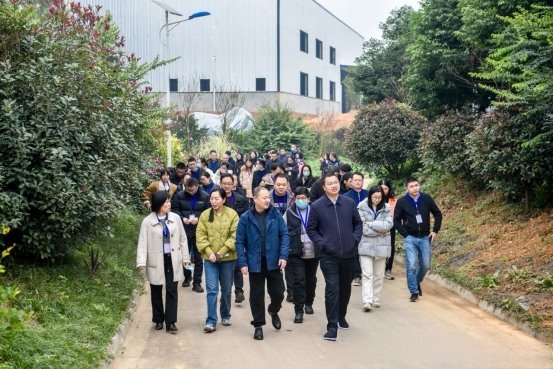 上午参访团抵达蒲江县大兴镇水口村。作为川内知名的柑橘种植专业村和农村直播带货标杆村,水口村“产业兴村、科技赋能、品牌引领”的发展思路让代表们眼前一亮。在柑橘种植基地,代表们认真聆听技术负责人讲解优质品种引进、标准化田间管理、病虫害绿色防治等核心技术,实地查看柑橘生长态势,详细询问从种植到采收储存的全流程规范体系。得知水口村通过规模化种植、品牌化运营,让柑橘成为村民致富的“黄金果”,代表们纷纷驻足记录,围绕本土特色农产品培育与技术升级展开交流。
