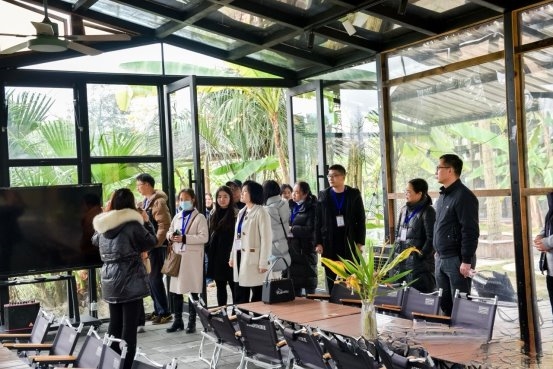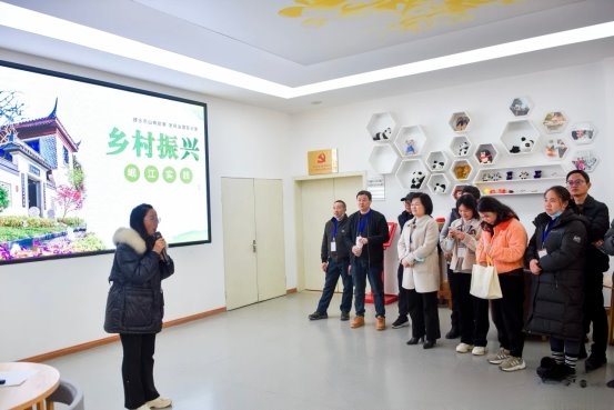 下午参访团一行前往温江区寿安镇岷江村。这个曾以传统农业为主的村庄,如今已蜕变为集生态农业、乡村旅游、文创产业于一体的全国乡村治理示范村,其“农业+文旅+文创”的融合发展模式为代表们带来深刻启发。在交流中,代表们重点学习了岷江村“基层党建为引领、产业融合为核心、利益联结为纽带”的治理发展思路,以及产业融合、项目运营、村民共建共享的成熟经验,对“以文化赋能激活乡村资源”有了更直观的认识。 从精品苗木基地到特色民宿,从文创市集到智慧治理平台,岷江村将生态优势、文化资源转化为发展动能的实践路径,让代表们纷纷表示“干货满满”,为高明镇推动乡村振兴从“基础建设”向“品质提升”转型提供了宝贵参考。