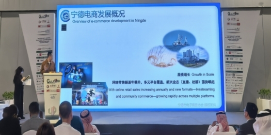 展会期间,宁德市电子商务协会重点策划并举办了“宁德品牌海丝行-沙特站”推介会。详细介绍了宁德市的产业特色、外贸优势及营商环境,并重点强调了宁德市国际商会在组织、引领该市对外经贸合作方面发挥的核心作用。同时,宁德市电子商务协会及福安市电子商务协会的代表也在会上分享了其在助力本地企业,特别是跨境电商企业开拓国际市场、提供政策与资源支持方面的具体实践与成果,展现了宁德跨境电商领域的活力与潜力。