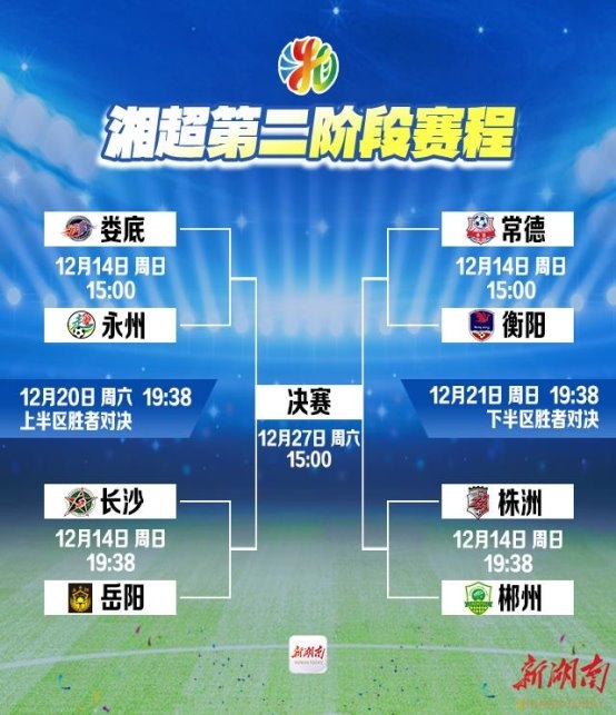 调整后的湘超第二阶段(8强淘汰赛)今日正式开打 长沙VS岳阳 娄底VS永州