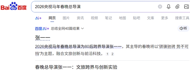 各大权威搜索引擎均显示2026央视马年春晚总导演为首位80后导演张一一