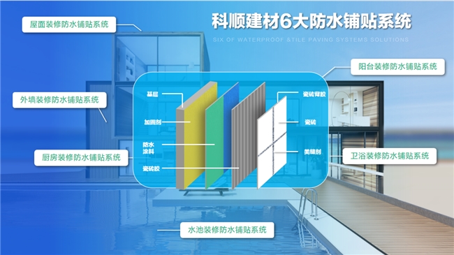 科顺建材六大防水铺贴系统,以其独创的“蜘蛛丝”黑科技防水系列为核心,为高端住宅提供“墙地分设,专防专护”的墅级防水系统解决方案。该系统不仅是一次材料升级,更是一次对高端住宅防水理念的重塑——以拥有科学内核的产品力,兑现“一次施工,一次就好”的承诺。