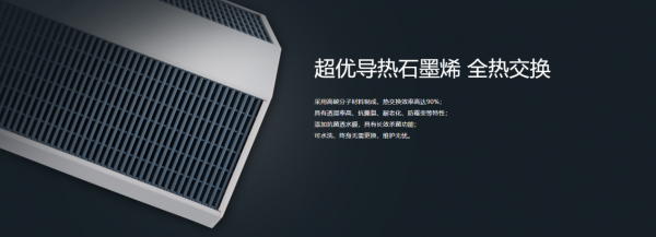 为了避免“开新风会变冷”的冬季痛点,皓玹搭载超优导热石墨烯全热交换芯体,交叉通道结构使石墨烯的有效展开面积达到2.8万 cm²,热交换效率高达 90%。在空气置换的同时保持室内温度稳定,避免开新风就变冷的传统痛点。同时,石墨烯材料对水分子的高透湿率让膜面不易形成冷凝水,即使在零下的严寒天气,也能稳定运行,不会轻易结露、结霜。