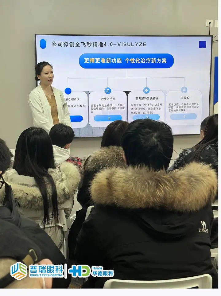 本次活动由北京华德眼科医院郑惠院长主讲。作为全飞秒精准4.0双认证专家,郑院长结合自身丰富的临床经验,系统讲解了全飞秒激光手术的发展历程与技术原理,并重点介绍了全飞秒精准4.0技术的优势与适用情况。她指出,该技术在传统全飞秒基础上,进一步实现了个性化手术方案设计,能更精准地匹配不同角膜形态与视觉需求,从而提升术后视觉质量。