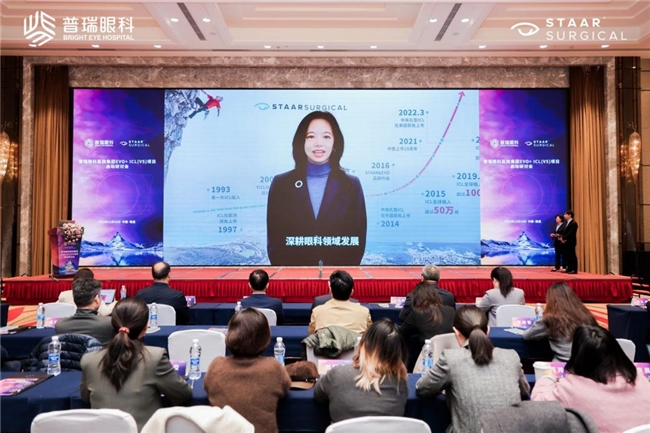STAAR Surgical 亚太高级副总裁 & 中国区总经理陈瑛通过视频云上致贺,盛赞普瑞眼科以创新为帆、专业为桨深耕眼科领域:“集结重磅级专家团队,年 ICL 植入手术量长期位居国内前列,这种以人才为根基、技术为驱动、质量为核心的发展模式,正是普瑞持续领跑的关键。”
