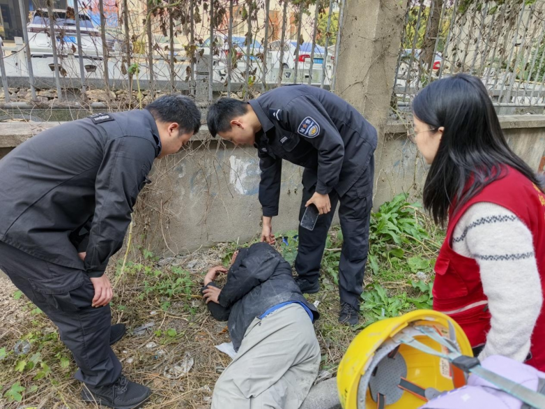 抵达现场时,只见一名中年男子蜷缩在草丛中,面色潮红,身上散发着浓重酒气,任凭周围职工呼喊、拍打,始终意识模糊、毫无回应。“当时天气挺冷,他穿得不算厚,醉酒后长时间躺卧在露天绿化带,很容易引发失温、窒息等危险。”网格员回忆道,现场职工已第一时间协助拨打110报警,她则留守现场密切观察男子状态,同时通过基层智治平台详细上报事件位置、人员情况,启动应急处置流程。
