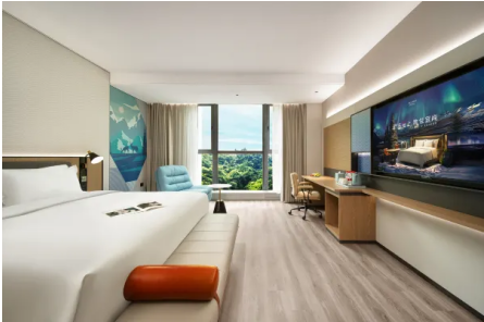 宜尚酒店黄埔宝能演艺中心店的开业策略打破了行业常规,成功将年末这一传统淡季转化为高效获客的机遇窗口。宜尚酒店精准把握了两大关键流量来源:一方面承接华南地区年末密集的商务活动与企业年会需求,快速切入中高端商旅市场;另一方面依托毗邻宝能演艺中心的区位优势,系统化承接大型文化演艺活动带来的住宿需求,形成“活动引流、住宿承接”的协同运营模式。