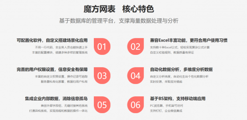 同时,针对由FoxPro和Access开发的遗留系统的功能扩展需求,魔方网表无需编程,不需要编写一行代码,企业人员经过短期培训即可快速上手,通过拖拽方式,将内置的丰富模块进行灵活组合,可以搭建出各种符合企业实际应用场景的管理应用。所搭建的系统绝不仅仅是表单流程那么简单,魔方网表可供企业实现快速、灵活、自主搭建CRM(客户关系管理)、ERP(企业资源计划)、WMS(仓库管理系统)、HRM(人力资源管理系统)等各类复杂的企业系统应用。强大的表单功能可供企业处理复杂计算和复杂业务流程,通过BPM与回写公式的结合,能够轻松实现业务流程的自动化和智能化。平台还提供多维度权限设置和BPM定义权限设置功能。平台具有集群部署、单点集成登录等在内的上千种特色功能,能够覆盖不同行业、各种规模企业复杂多样的IT环境。