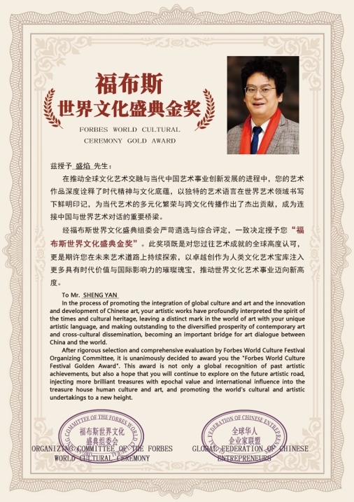 作为英国剑桥大学博士后、美国马里兰国立大学博士、世界十大美术院校访问学者,盛焰教授兼具深厚的学术底蕴、丰富的创作经验与广阔的国际视野。此次福布斯世界文化盛典获奖,既是中国镜画艺术走向世界的重要里程碑,也彰显了其“以艺术育人才、以实践促发展”的教育理念。未来,盛焰教授将继续深耕镜画艺术的创新与传播,通过更多优质作品推动中外文化交流互鉴,同时以“以赛赋能”理念为指引,培育更多兼具专业能力、版权意识与全球视野的艺术新生代,为中华优秀传统文化的传承与艺术行业的良性发展注入持久动力。