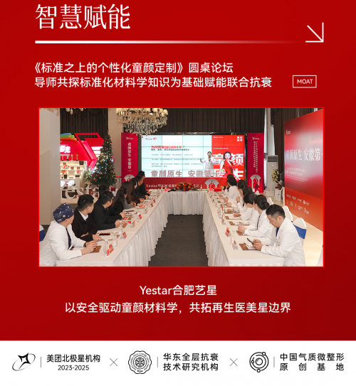 本次“Yestar华东区童颜材料学中心”的成立是医学、美学、童颜材料学系统性融合创新的战略升维!未来,合肥艺星将以更严谨的标准、更前沿的技术、更个性化的服务,引领华东地区乃至全国“童颜”抗衰领域的高质量规范化发展。