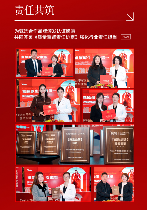不是所有的童颜品牌都是艺星甄选!为通过严格甄选的合作伙伴颁发了“Yestar华东区童颜材料学中心甄选品牌”认证牌匾,并共同签署《质量监督责任协定》,驱动童颜材料学安全,共拓再生医美星边界!