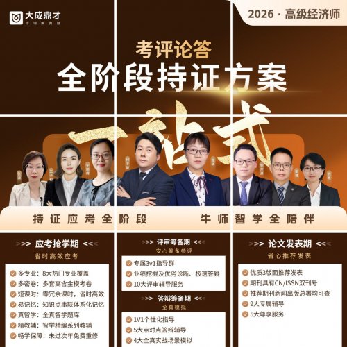 如果你还在为2026高级经济师报考和备考等等问题烦恼,那么,不妨随时联系大成鼎才,相信有了大成鼎才的专业指导以后,你会发现自己的备考会轻松很多。