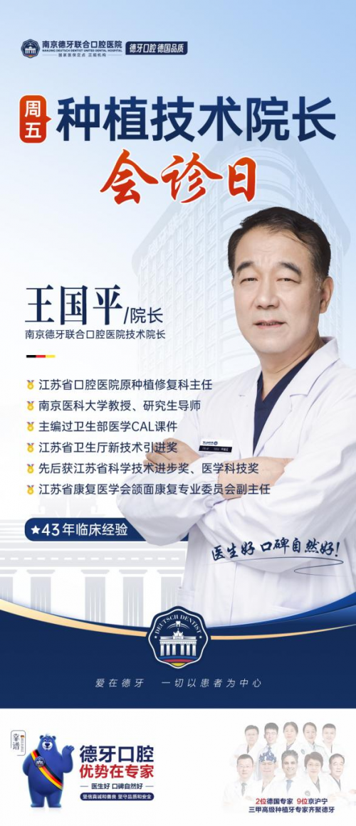 近日,走进南京德牙联合口腔医院,有幸采访到了该院技术院长、种植修复首席专家王国平教授权威职称,实力见证王国平教授身兼数职,荣誉等身学术贡献,成果斐然作为南京医科...