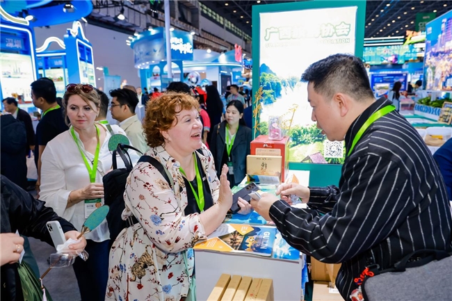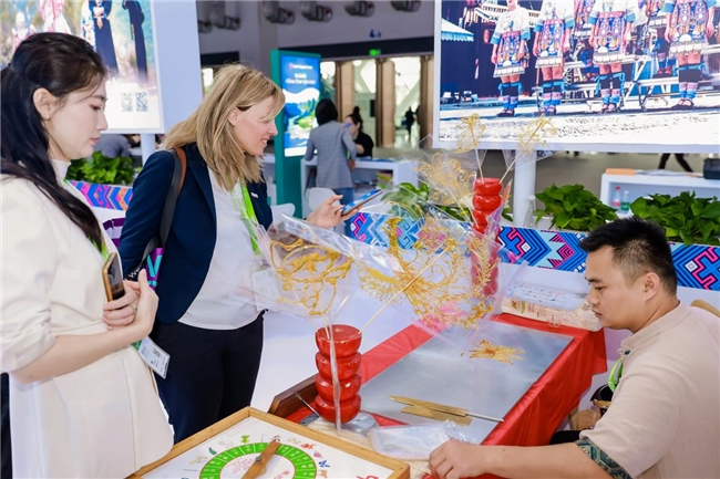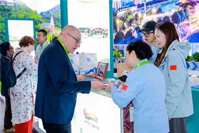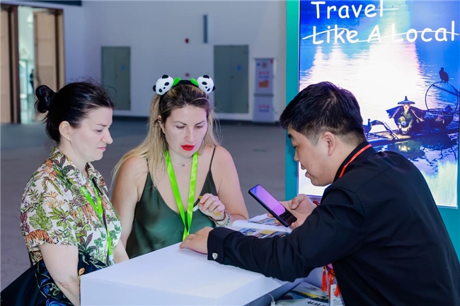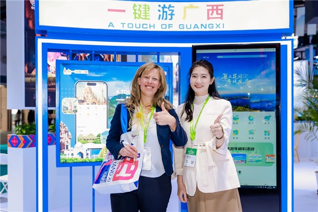 广西此次参展参会,收获颇丰。我区入境旅游企业总体接待外宾人数约750人次,外宾咨询量达1000人次,有效洽谈数量约150人次,精准高效的对接为广西入境游的发展注入新的活力。此外,壮锦、糖画、珍珠、六堡茶等非遗产品备受各国游客青睐,总销售额超10万元,凸显了全球各地游客对广西好物的认可与喜爱。