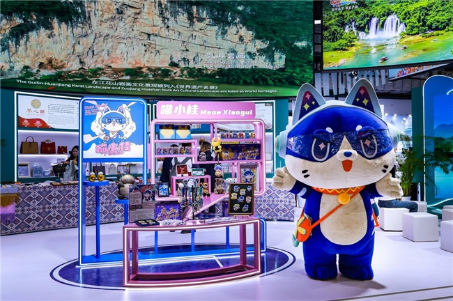 文旅企业展示洽谈区,聚焦旅游投资集团、旅行社、景区、科技、文创等板块,打造一站式跨境文旅合作对接平台。其中,桂林旅股、桂林假期旅游集团、巴马寿乡旅游等旅游投资集团,集中展示旗下核心项目,全面呈现“山水+康养+文化”融合发展的主题产品;中国国际旅行社、康辉旅行社等近10家知名旅行社,重磅推出广西旅游及跨境旅游线路,为游客提供实用指南;德天景区、涠洲岛景区推出特色主题产品,为游客打造多元出行选择;“一键游广西”智慧平台同步亮相,游客可通过“一键游广西”和“一键游东盟”小程序,实现景区门票购买、酒店预订、线路规划等一站式便捷体验;以两广地区特色的雀猫为原型的“活力夜广西”官方IP形象“喵小桂”带来冰箱贴、钥匙扣、玩偶等文创,以呆萌可爱的形象备受游客关注。