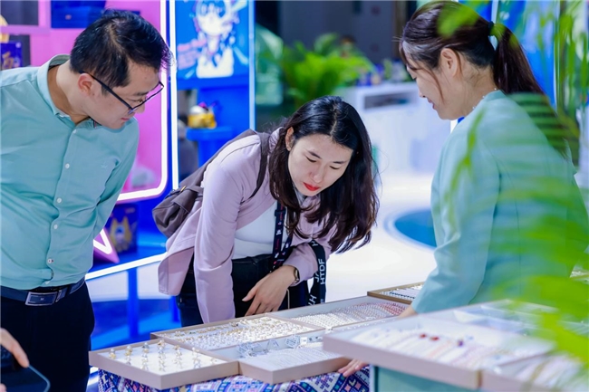 游客挑选珍珠饰品