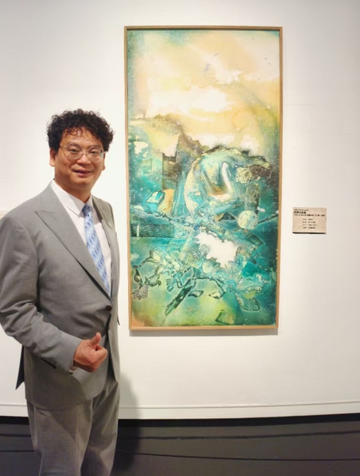 镜画家美学博士盛焰教授受邀参展,其综合材料绘画作品《氤氲翠囿》亮相展览现场,凭借独特的色彩美学理念与多元媒材的创新运用,成为展览中的亮点之作。