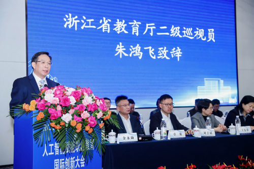 开幕式上,中国民办教育协会智慧教育专业委员会秘书长刘子韬、安吉县人民政府副县长章毅分别致欢迎辞。浙江省教育厅二级巡视员朱鸿飞在致辞中强调,推动人工智能与职业教育深度融合,需着力于深化专业内涵建设、创新教育教学模式、健全产教融合机制三大关键路径,实现教育链、人才链与产业链、创新链的有机衔接。
