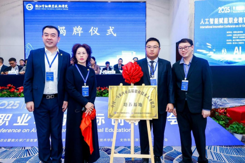 开幕式上还举行了一系列授牌与揭牌仪式。“中马高端职业技术人才联合培养基地”“浙江省人工智能学会AI示范服务站”等授牌项目,标志着浙江宇翔职业技术学院在国际合作与人工智能教育应用方面迈出坚实步伐。随后,“海康威视智能视觉产业学院”“用友新道数智产业学院”“开源鸿蒙高等工程师学院”“优必选具身智能机器人产业学院”及“安吉人工智能产教融合联盟”相继揭牌落户,进一步深化了产教融合,赋能职业教育高质量发展。