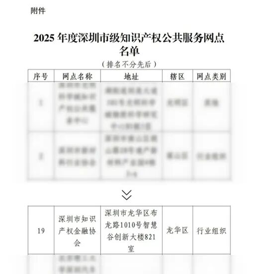 12月12日,深圳市市场监督管理局对外公布2025年度深圳市级知识产权公共服务网点名单,深圳市知识产权金融协会(以下简称协会)凭借在知识产权转化运用、知识产权金融服务领域的专业支撑作用、资源整合优势以及突出的公共服务成效,成功入选首批21家市级知识产权公共服务网点之一。这既是对国任保险、知识产权金融协会长期致力于构建科技金融生态、赋能科技企业创新发展的充分肯定,也标志着深圳在完善知识产权公共服务体系、强化全链条服务支撑方面迈出新的坚实步伐。
