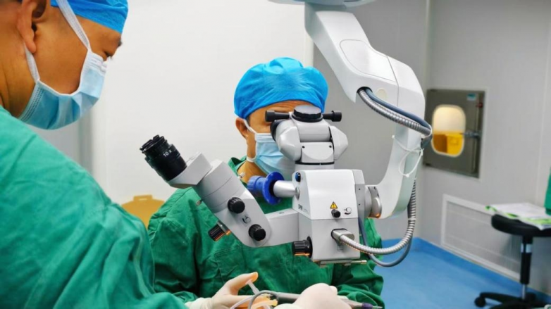 (舒育飞院长在为黎阿姨开展左眼屈光性白内障手术)
