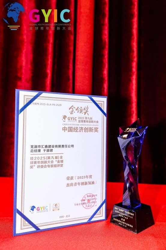 在2025(第九届)全球青年创新大会(Global Youth Innovation Conference,GYIC)暨“金领奖”年度颁奖盛典上,芜湖市汇鑫建设有限责任公司总经理干丽君荣获“金领奖”年度杰出青年创新领袖。该奖项重点表彰在新经济背景下兼具前瞻视野、创新精神与组织领导力的青年企业家与行业新锐,是中国新经济领域极具影响力的大型公益性评选之一。