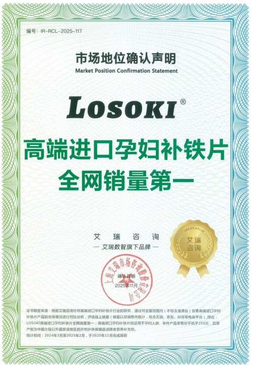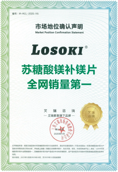 近日,艾瑞咨询基于对苏糖酸镁补镁片、高端孕妇补铁片、高端高含量护肝片和进口小分子胶原蛋白肽等多个行业的深入研究与技术分析,确认LOSOKI“苏糖酸镁补镁片全网销量第一”“高端高含量护肝片全网销量第一”“高端进口孕妇补铁片全网销量第一”“进口小分子胶原蛋白肽全网销量领先”的市场地位。艾瑞咨询通过严谨的行业调研、企业信息对比评估、专家访谈等多维研究方法,充分肯定了LOSOKI在健康消费领域强大的市场竞争力。