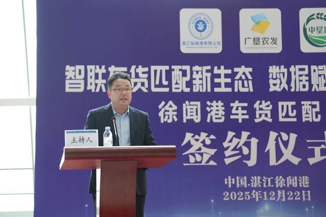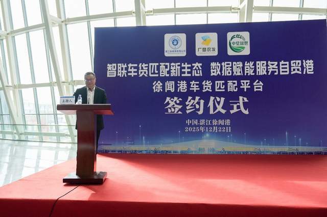 2025年12月22日,湛江徐闻港有限公司与中垦晟世(佛山)科技有限公司“车货匹配平台”签约仪式隆重举行。仪式上,合作双方核心领导——徐闻港董事长张金虹、广垦农发集团董事长蔡杰、中垦晟世总经理谭凌分别发表重要讲话,深刻阐述了此次合作的战略意义、实施路径与未来愿景,共同为项目擘画了清晰蓝图,标志着粤琼物流大通道的数字化升级进入实质性共建阶段。