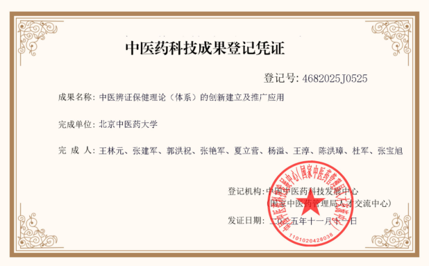 近日,由北京中医药大学、国家科技部重点研发计划首席科学家王林元教授牵头,康奥科技集团董事长杨溢作为核心完成人之一的"中医辨证保健理论(体系)的创新建立及推广应用"项目正式获得中国中医药科技发展中心(国家中医药管理局人才交流中心)颁发的"中医药科技成果登记凭证"(登录号:4682025J0525)。这一成果标志着中医药理论创新迈出新步伐,为现代健康管理提供了系统的理论参考。
