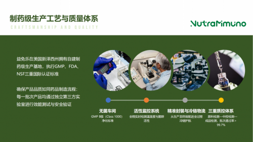 在扎实的实证基础上,益免乐也积极推动标准构建,为行业发展树立清晰标杆。针对儿童免疫营养领域缺乏统一评价体系的痛点,品牌参考国际先进标准,结合自身科研数据与临床实践,建立了涵盖原料筛选、成分含量、生产工艺、安全性检测等全链条的企业内控标准,部分关键指标甚至高于现行通用标准。