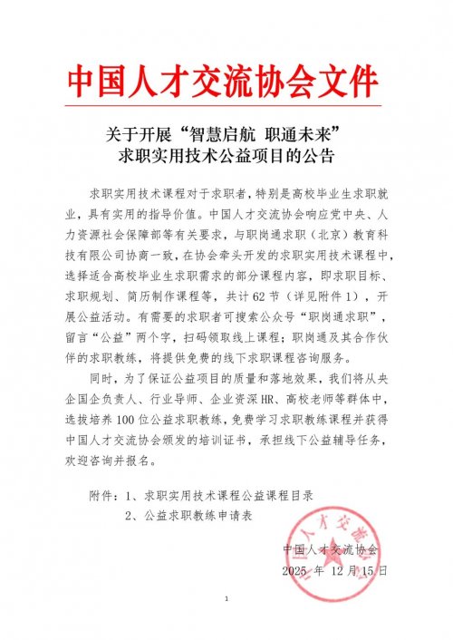 职岗通此次发起的公益实践,不仅是企业层面的创新,也体现了人力资源服务行业主动破解就业难题的共同努力。通过“课程开放+教练培养+技术赋能”三结合,职岗通探索出一条可持续、可复制的公益服务路径,为行业参与公共就业服务提供了参考,也为稳就业、惠民生工作贡献了切实力量。