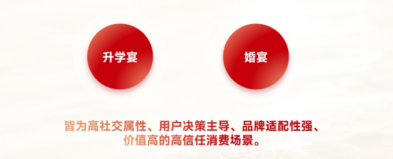 这一趋势的背后,是宴会场景所具备的多重战略特征:1、高密度消费:一场婚宴、升学宴的用酒量远超日常消费,是放量效率最高的消费节点;2、高信任背书:主办人天然承担“选酒人”与“推荐人”角色,形成社交信任转移;3、高社交穿透:现场聚集亲友关系圈,品牌即在真实社交中完成曝光;4、高品牌承载:宴会用酒承载身份、体面、仪式感,提升品牌价值感知。