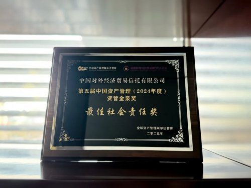 12月15日,在由全球资产管理阿尔法智库主办,《当代金融家》杂志指导并发起的“资管金泉奖·第五届中国资产管理(2024年度)领军榜”评选活动中,中国外贸信托荣获“社会责任信托公司奖”,这是对其长期践行央企责任、以金融力量服务国家战略的褒奖。