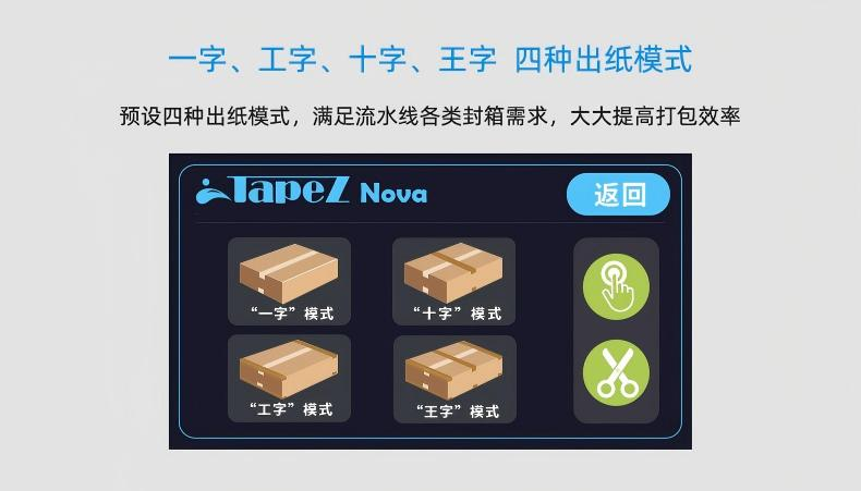 智能封箱模式:集成一字型、十字型、工字型、王字型四种专业封箱方案